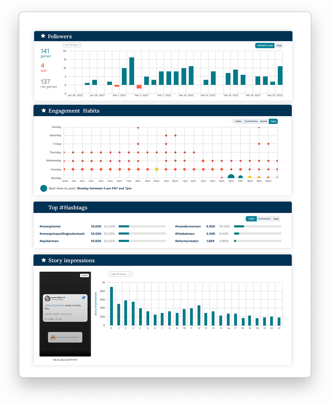 Visualize content performance across all of your social channels with full access to campaign analytics and insights to better assert your value. Measure organic content, optimize creative direction, and identify potential campaigns and partners.