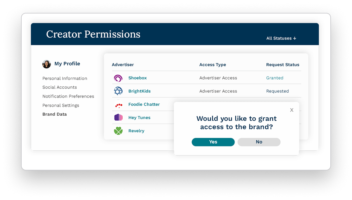 Control usage of your social profiles and content. Easily manage advertiser access to ensure permissions are accurate and up to date.